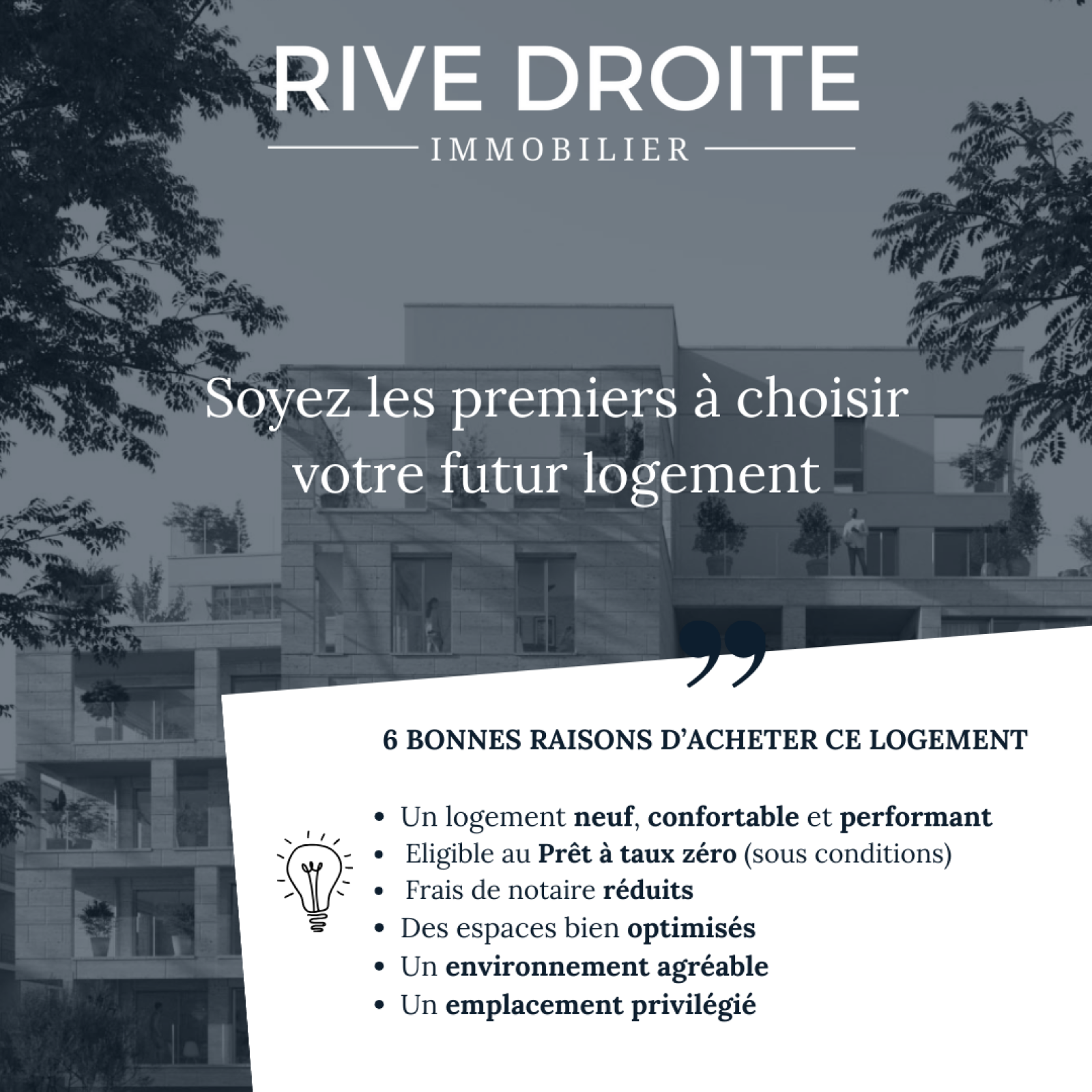 RIVE DROITE vous propose - RENNES Les Lices - Anatole France - Dans le quartier privilégié de la Touche à deux pas du centre historique et du métro Anatole France, découvrez cette superbe résidence de standing à l'architecture moderne et élégante. Superbe appartement T4 (2 chambres) avec grand balcon donnant sur la rivière, vaste pièce de vie, 2 chambres dont une suite parentale avec salle d'eau privative, 2ème salle de bain, wc, cellier, Parking en sous sol - BELLES PRESTATIONS - FRAIS DE NOTAIRE REDUITS - ELIGIBLE PRET A TAUX ZERO - DISPONIBLE IMMEDIATEMENT - A SAISIR